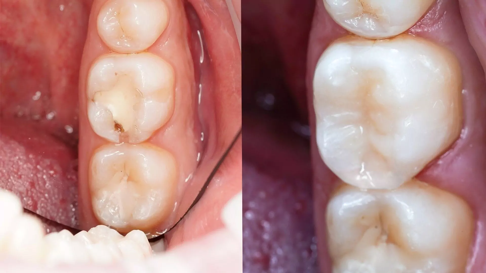 Починається із незначного ураження емалі, проте невеличка пляма із часом може прогресувати в темну цятку. Його можна зупинити на стадії плями та вилікувати, допоки воно не встигло зруйнувати велику кількість тканин.